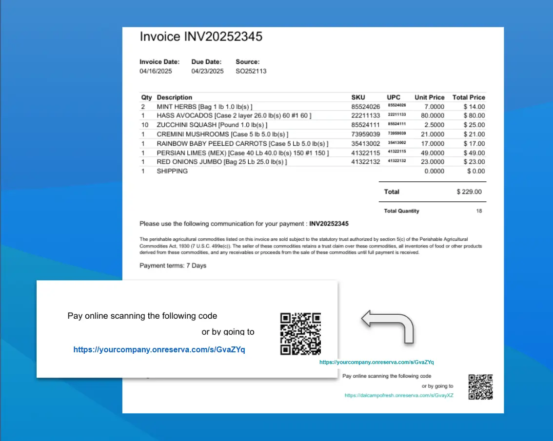 Reserva Treasury is a fintech-powered cash flow and liquidity management solution that automates accounts payable and receivable for produce businesses. It consolidates collections and vendor payments into a single dashboard, offering predictive cash flow analytics, international and domestic payments, and embedded financing options. Integrated directly into the ERP, it helps reduce payment errors, improve vendor terms, and ensure timely payouts.